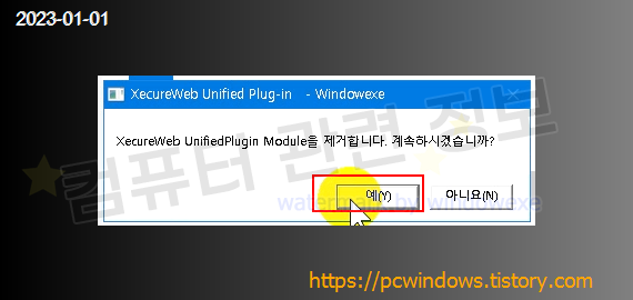 프로그램을 삭제할건지 물어보는데 예 클릭.