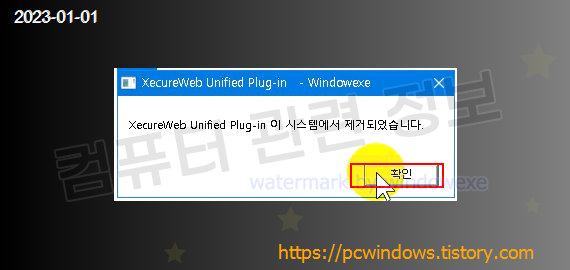 프로그램이 정상적으로 제거되었습니다. 확인 클릭.