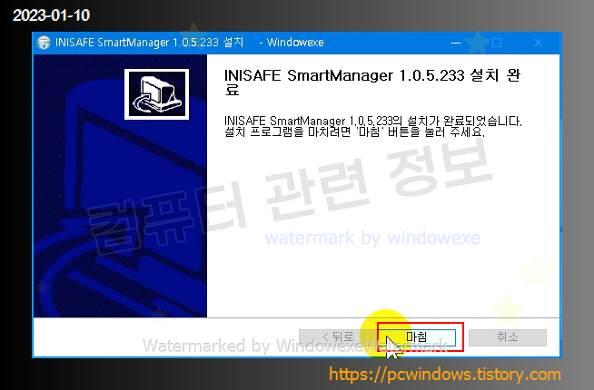 프로그램 설치가 완료되었습니다. 마침 클릭.