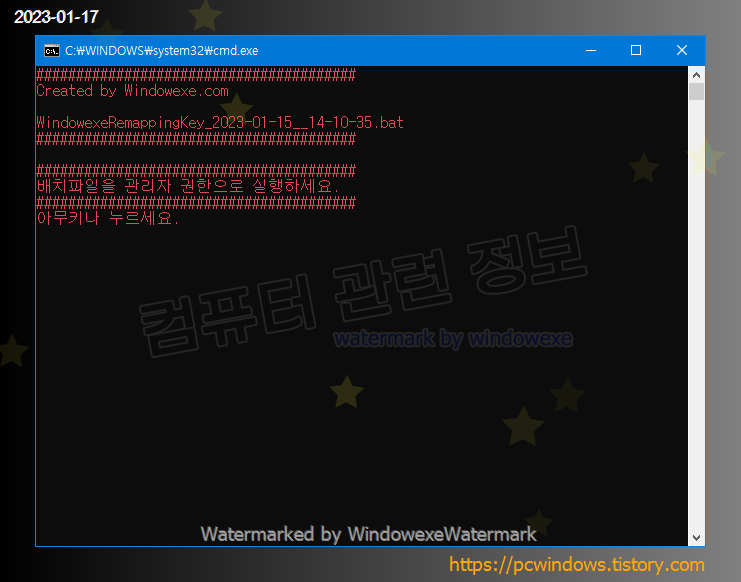 배치파일을 관리자 권한으로 실행한 화면입니다.