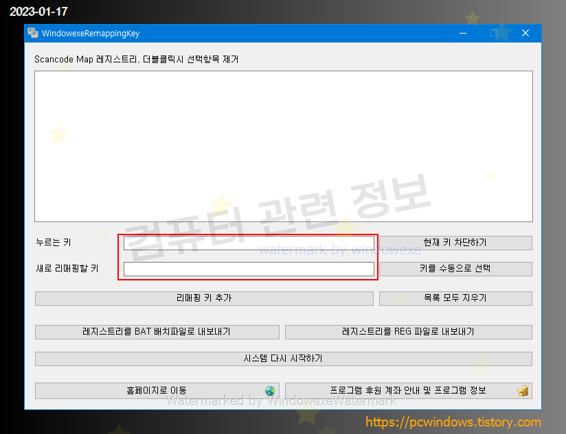 WindowexeReSendKey 프로그램과는 달리 이 프로그램은 일대일 매핑만 할 수 있는 레지스트리 변경 프로그램입니다.