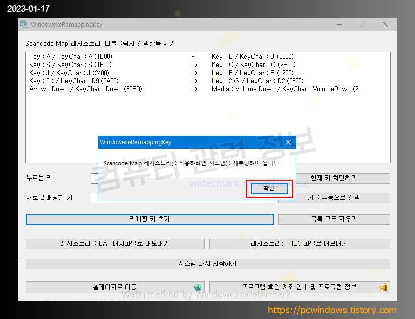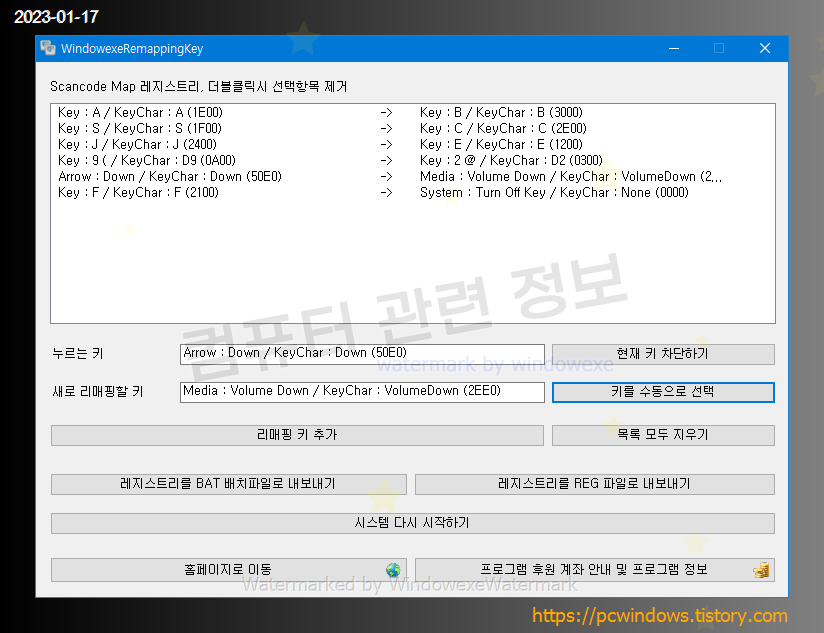 리매핑 프로그램을 사용하지 않고 레지스트리 편집기를 사용해서 리매핑도 가능하기는 한데 상당히 복잡한 작업이므로 별도의 프로그램을 사용하는 것이 좋습니다.