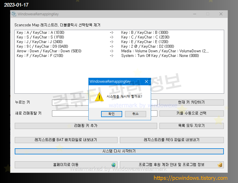 키를 추가할 때에 시스템 재부팅 확인 메세지가 나옵니다.