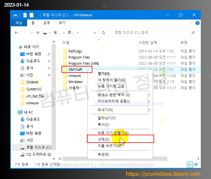 프로그램 삭제파일이 삭제되지 않고 남아 있는 경우 탐색기에서 해당 폴더를 삭제하면 됩니다.