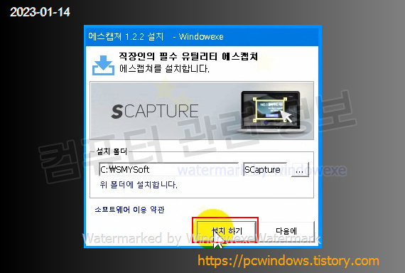 다운로드 받은 파일을 실행하세요. 설치하기 클릭.