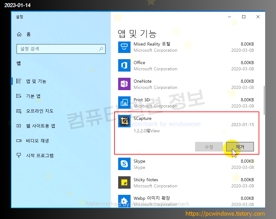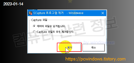 프로그램을 삭제할건지 물어보는데 제거 클릭.