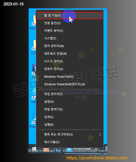 시작 - 우클릭 - 앱 및 기능 실행.