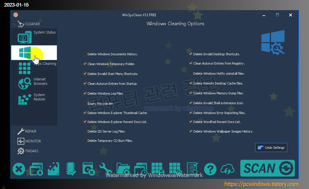 WinSysClean X12 FREE 를 찾아서 제거클릭.