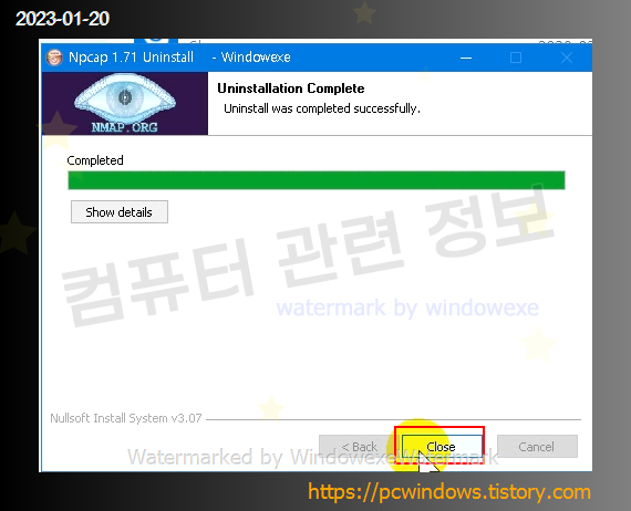 Wireshark 를 찾아서 제거클릭