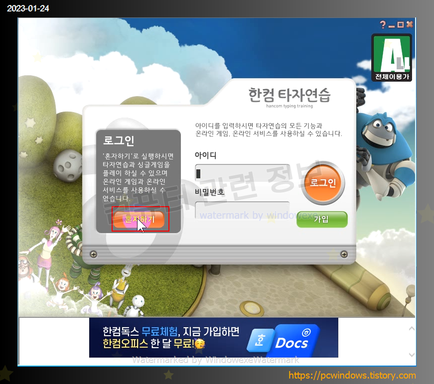 회원가입을 하지 않고 사용이 가능합니다. 혼자하기 클릭.