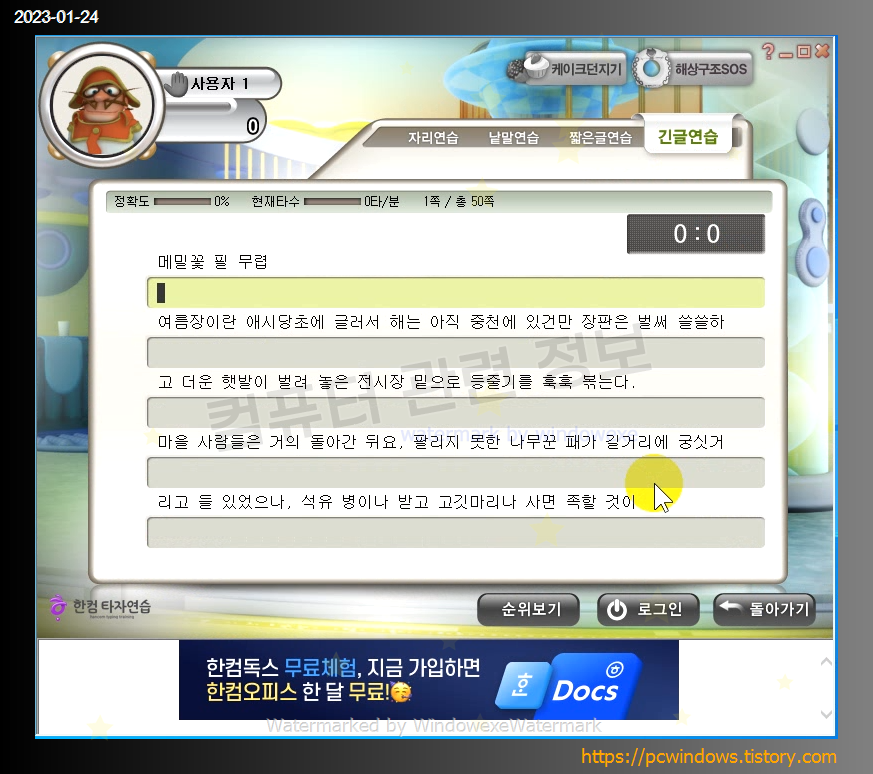 (구) 한컴 타자연습 다운로드를 클릭하세요.