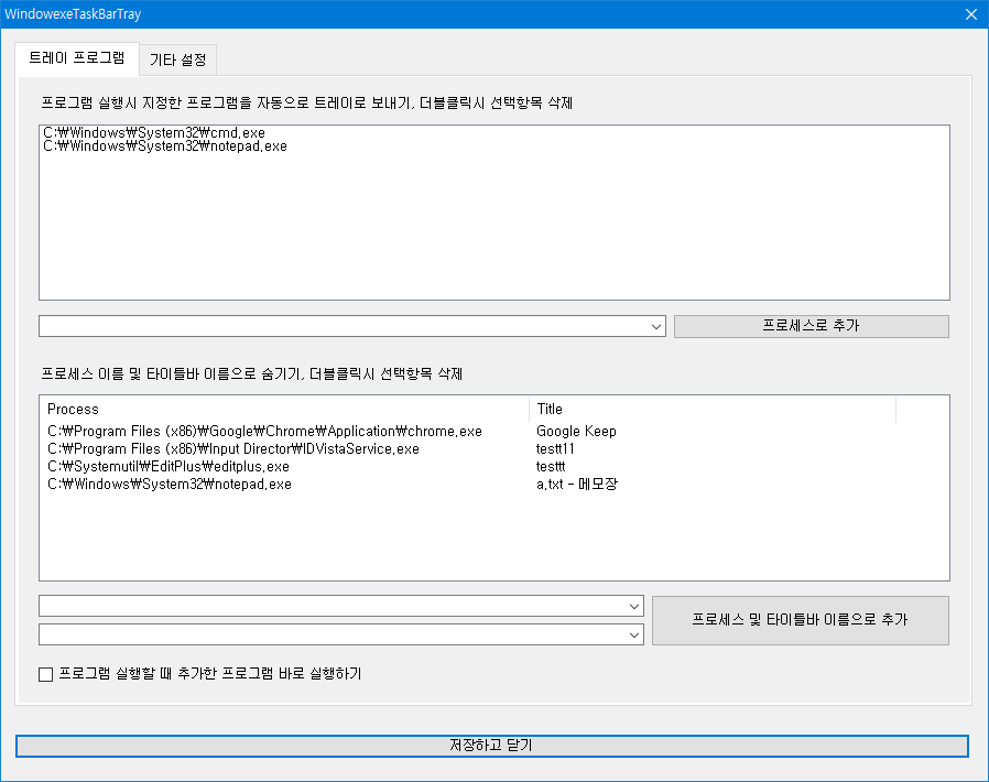프로세스 이름으로 추가 및 프로세스 및 타이틀바의 이름으로 추가할 수 있습니다.