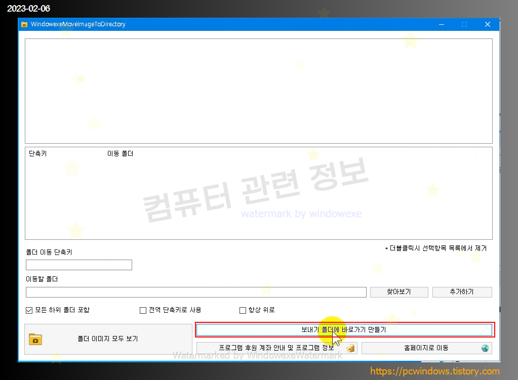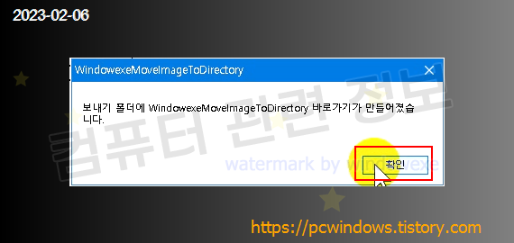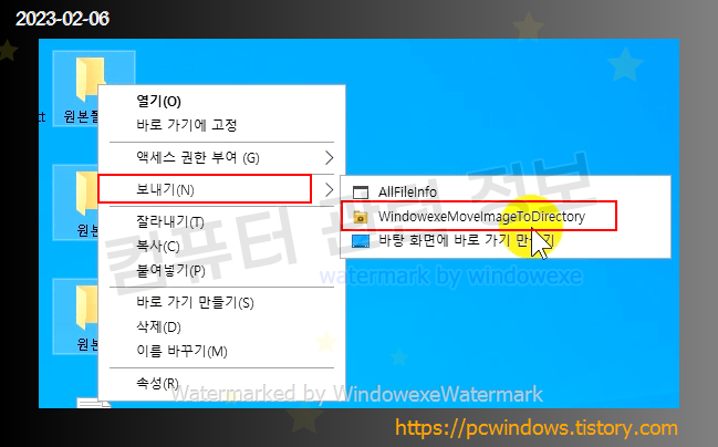 마우스 우클릭하고 보내기 - WindowexeMoveImageToDirectory 클릭.