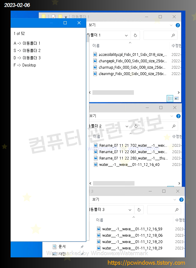 단축키를 사용해서 왼쪽 폴더에 있는 모든 이미지 파일을 오른쪽에 있는 폴더로 사진을 보면서 각각 이동시킬 수 있습니다.