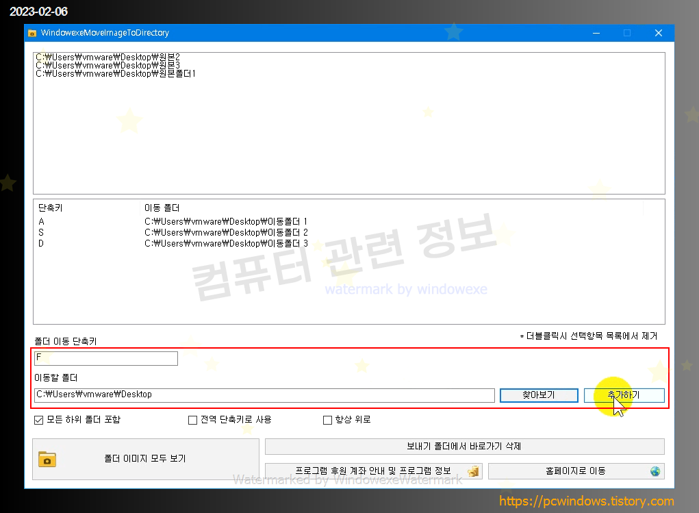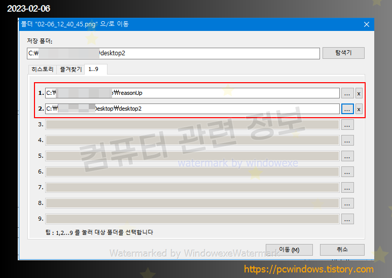 이 상태에서 지정한 단축키를 누르기만 하면 아무런 확인 메세지 없이 지정한 폴더로 이동합니다.