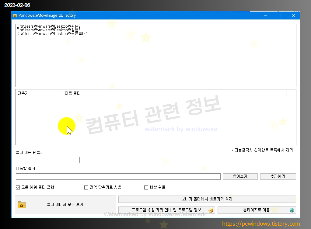 프로그램이 실행되면서 탐색기에서 선택한 폴더가 위쪽에 추가됩니다.