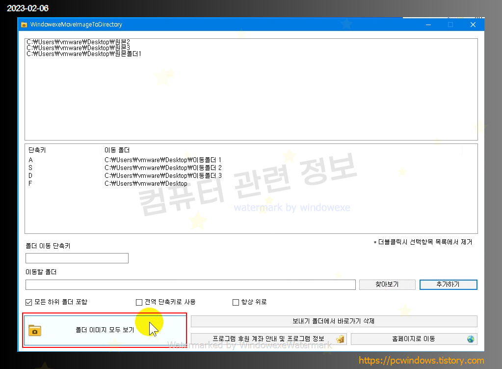 단축키 설정이 완료되었으면 아래에 있는 폴더 이미지 모두 보기를 클릭하세요.