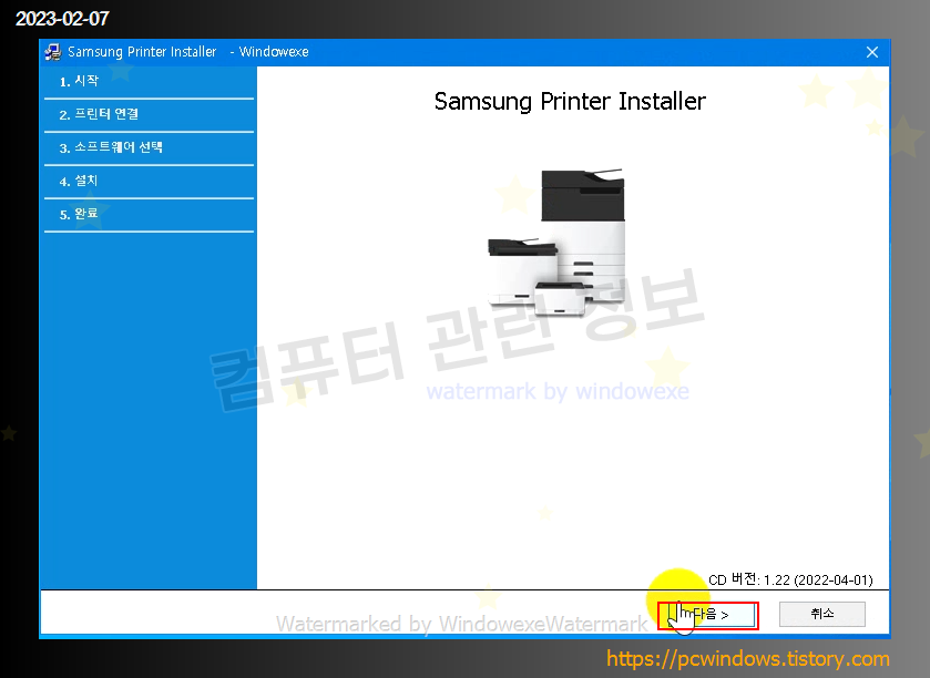 프로그램 설치 마법사가 실행됩니다. 다음 클릭.
