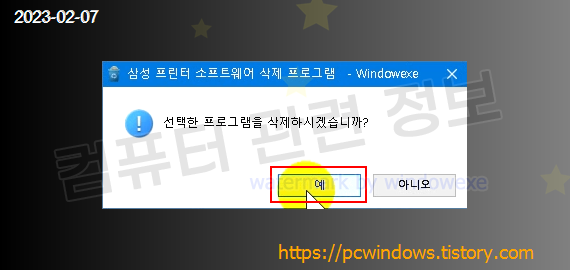 프로그램을 삭제할건지 물어보는데 예 클릭.