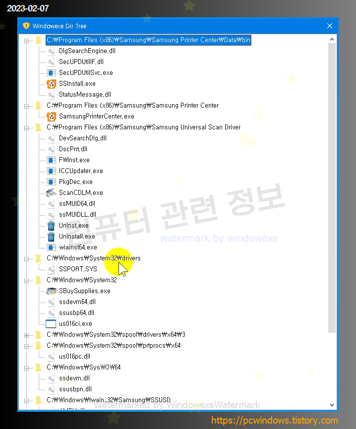 드라이버 프로그램이 설치된 폴더의 트리입니다. 자세한 내용은 본문하단 로그 참고.