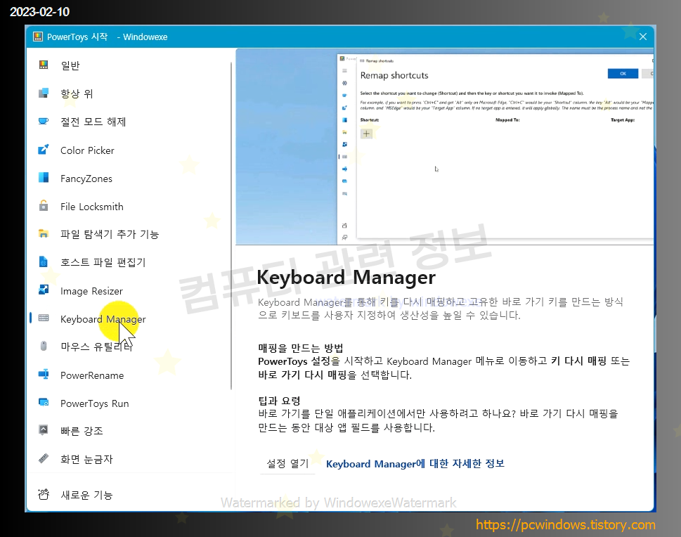 키보드 매니저. 단축키 키매핑 도구입니다. 사용자가 지정한 키를 다른 단축키로 변경할 수 있습니다.