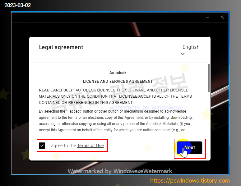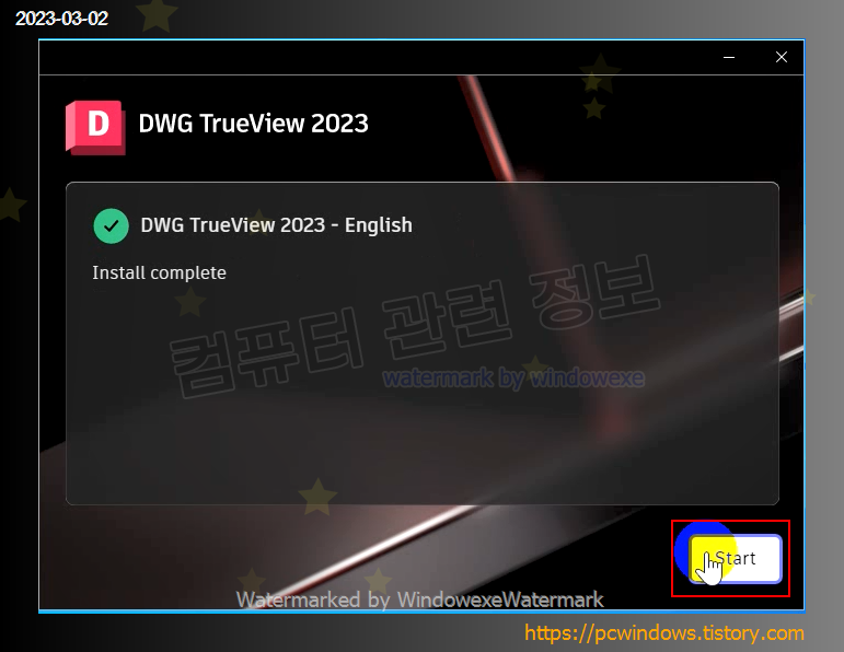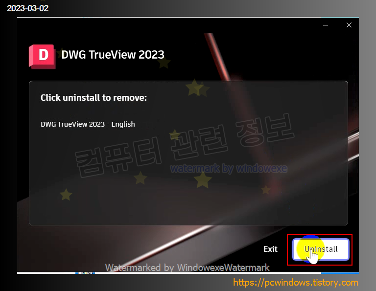 Autodesk DWG TrueView 2023 - English 를 찾아서 제거클릭