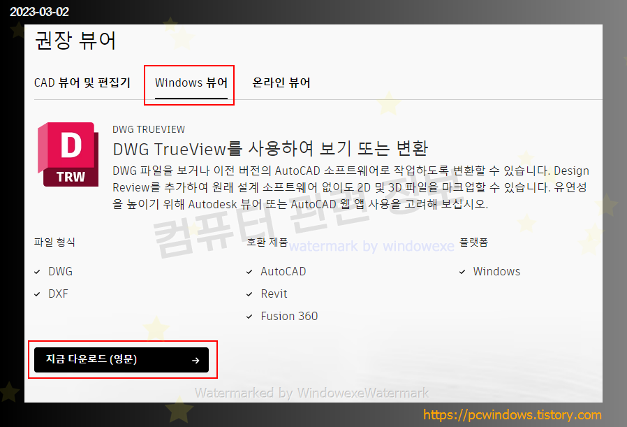 위 링크로 이동해서 Windows 뷰어 클릭. 아래쪽에 있는 지금 다운로드를 클릭하세요.