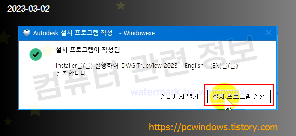설치파일 다운로드가 완료되었습니다. 프로그램 실행 클릭.