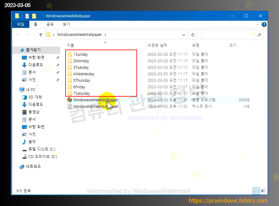 WindowexeWeekWallpaper 파일을 실행하세요.