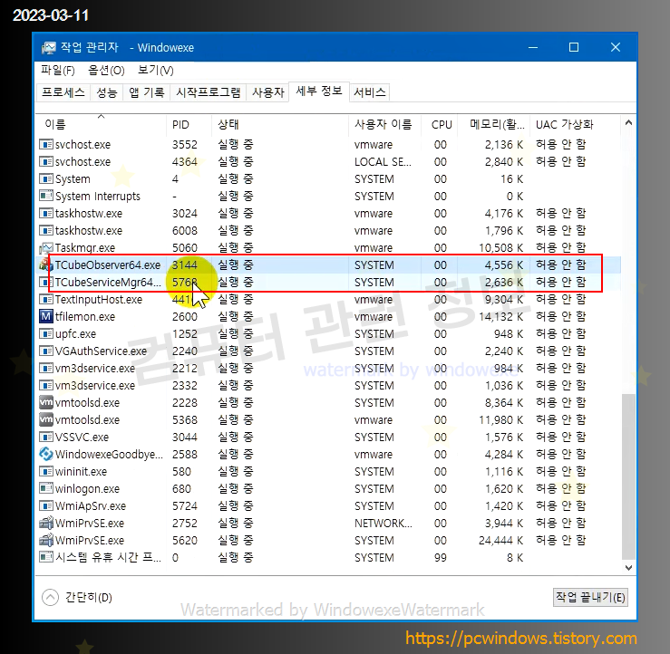 TCubeServiceMgr64.exe , TCubeObserver64.exe 프로세스는 부팅시마다 자동으로 실행됩니다.