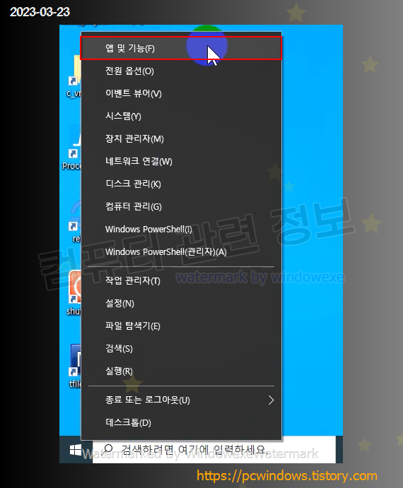 시작 - 우클릭 - 앱 및 기능 실행.