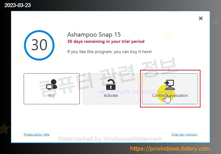 30일 사용기한이 표시됩니다. continue evaluation 클릭