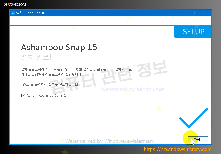 프로그램 설치가 완료되었습니다. 완료 클릭