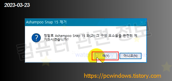 프로그램을 삭제할건지 물어보는데 예 클릭.