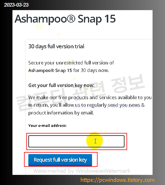 무료 활성화키 얻기를 클릭하고 웹브라우저에서 이메일 주소를 입력하고 Request full version key를 클릭하세요.