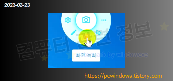설정, 편집기 열기, 화면 녹화, 자유 선택, 기타 메뉴가 있습니다.