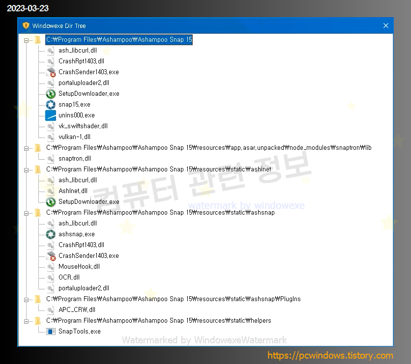 프로그램이 설치된 폴더의 트리입니다. 자세한 내용은 본문하단 로그 참고.