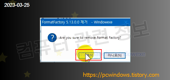 프로그램을 삭제할건지 물어보는데 예 클릭.