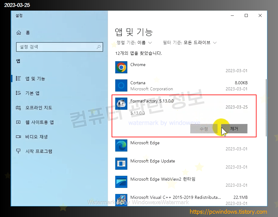 FormatFactory 를 찾아서 제거클릭