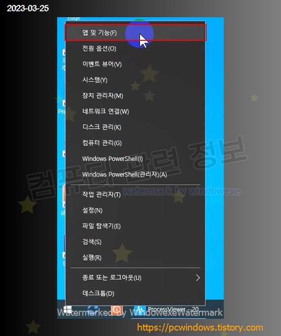 시작 - 우클릭 - 앱 및 기능 실행.