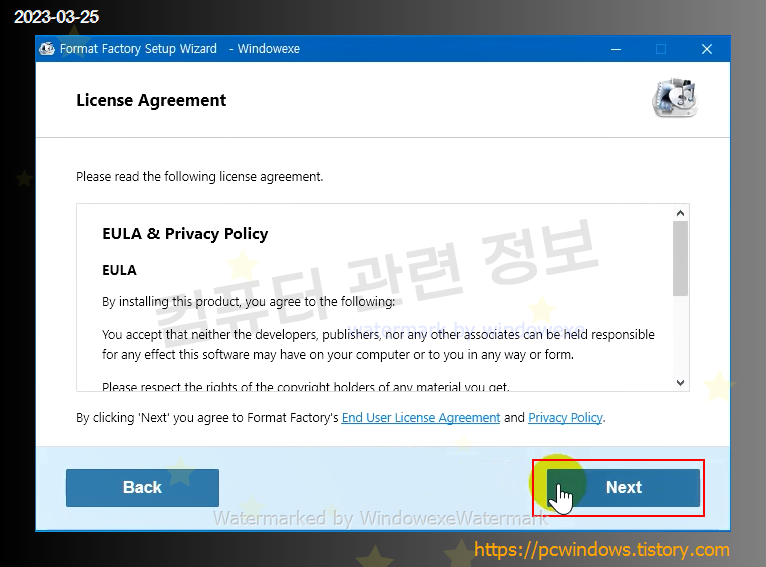 사용권 계약 내용이 나오는데 Next 클릭