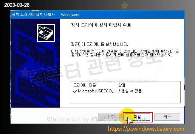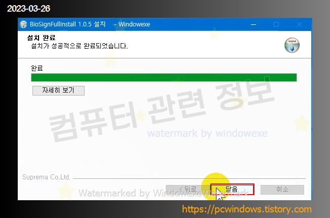 프로그램 설치가 완료되었습니다. 마침 클릭
