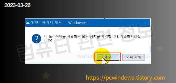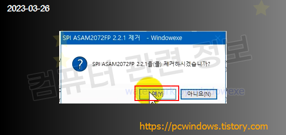 프로그램을 삭제할건지 물어보는데 예 클릭.