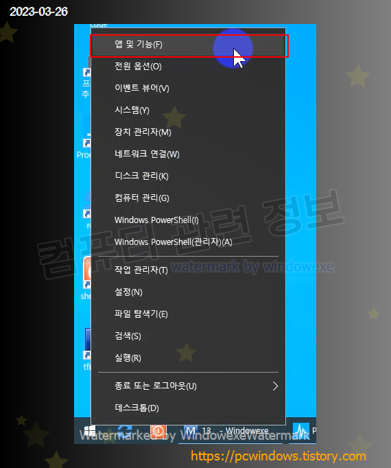 시작 - 우클릭 - 앱 및 기능 실행.