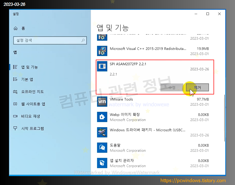 앱 및 기능에서는 제대로 삭제가 되지 않습니다.