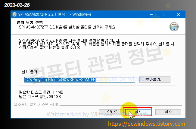설치 클릭