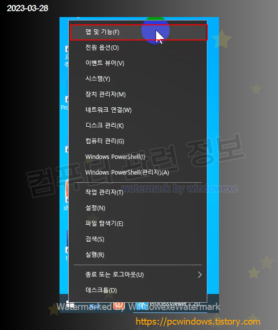 시작 - 우클릭 - 앱 및 기능 실행.