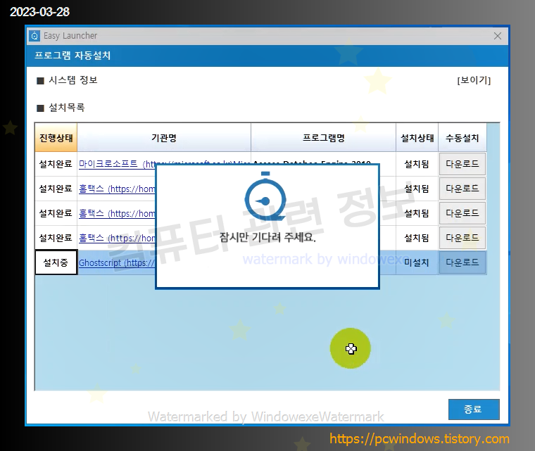 프로그램 업데이트를 진행합니다. 잠시 기다리세요.