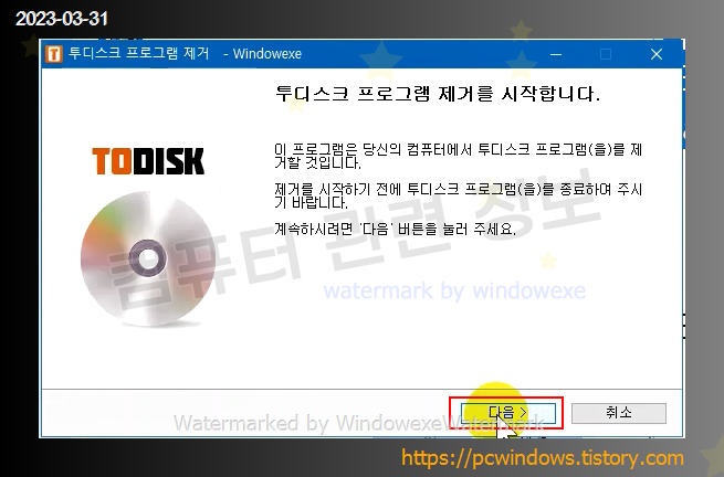 투x디스크 제거클릭