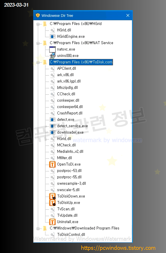 프로그램이 설치된 폴더의 트리입니다. 자세한 내용은 본문하단 로그 참고.